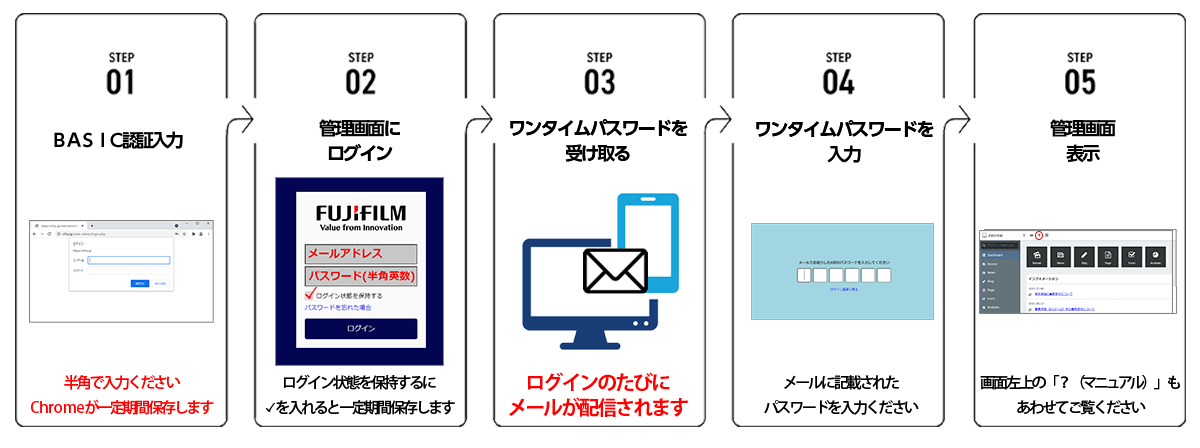 公開後に、編集用サイトのURLとログインするためのアカウントをお渡しします。